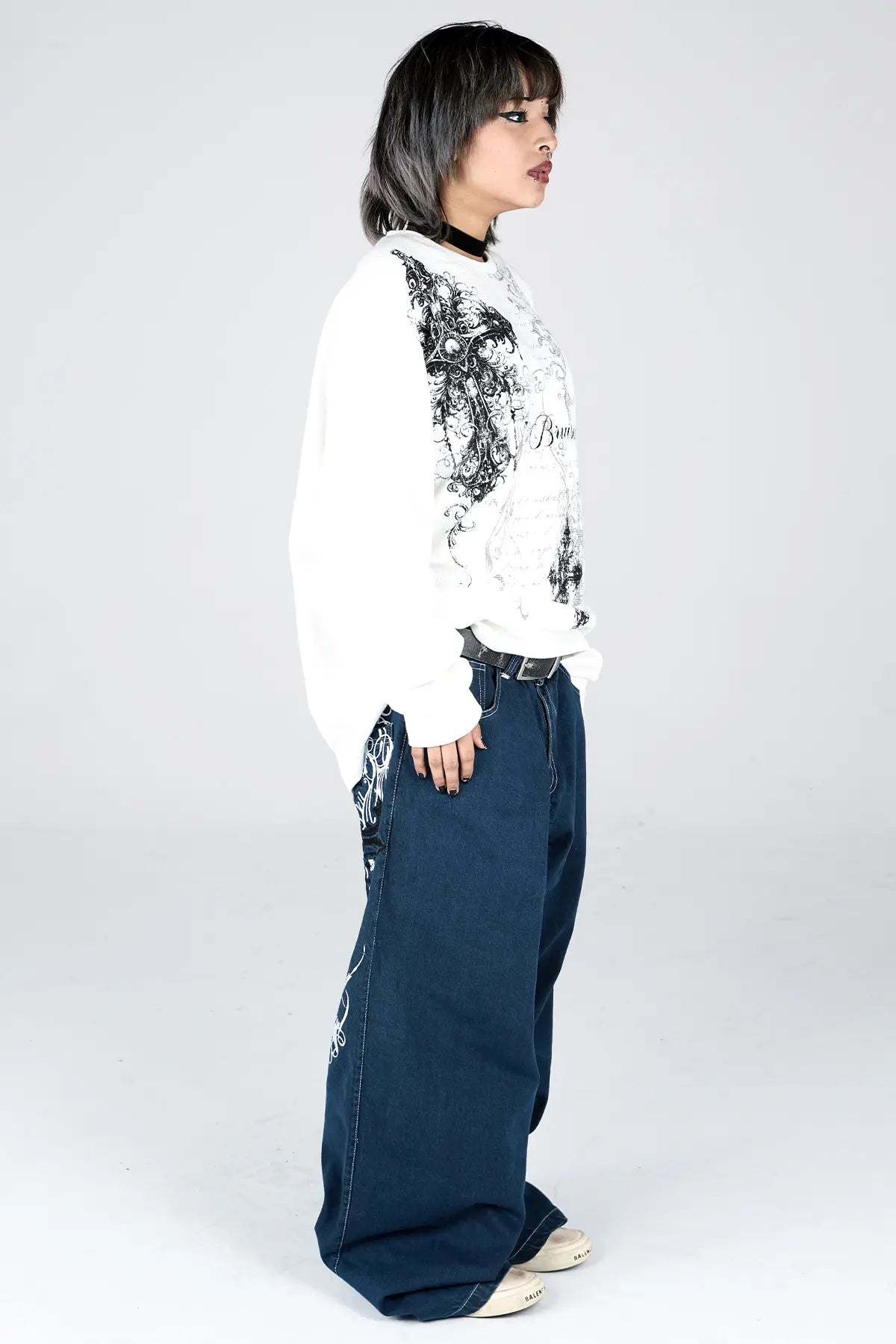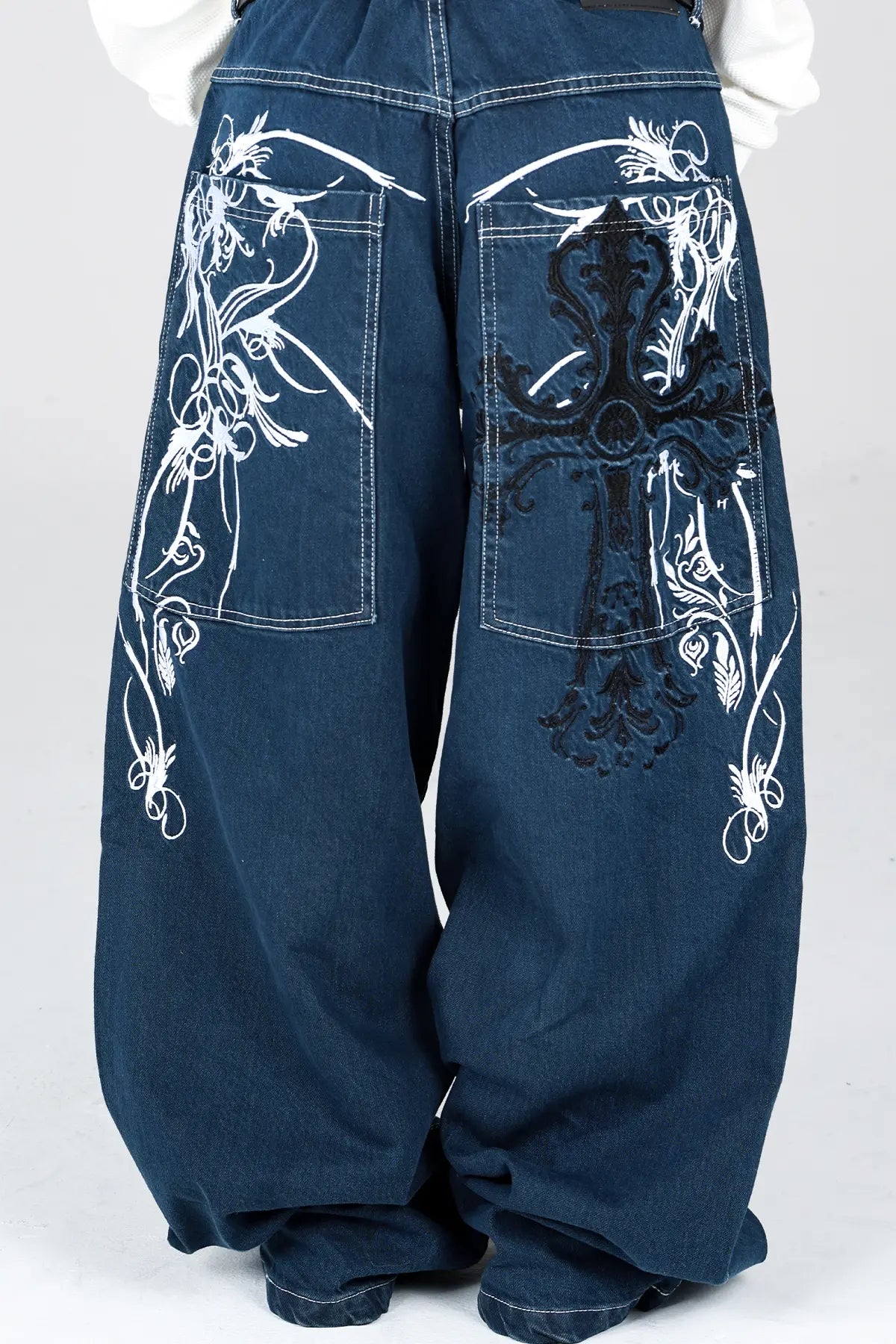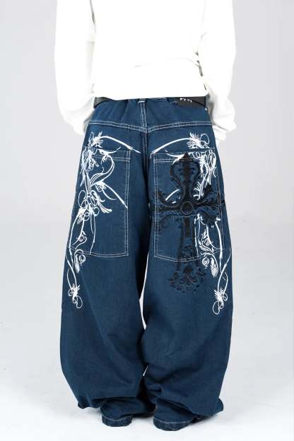 Durable mid-weight denim with a relaxed, baggy fit built for everyday wear. Premium cotton comfort, wide leg, and detailed embroidery.