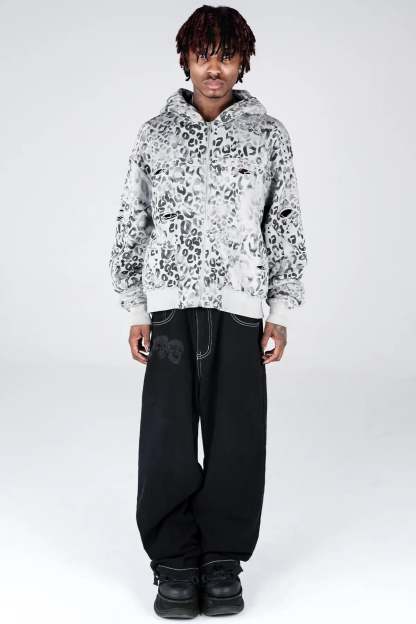 Grey Leopard Zip Hoodie