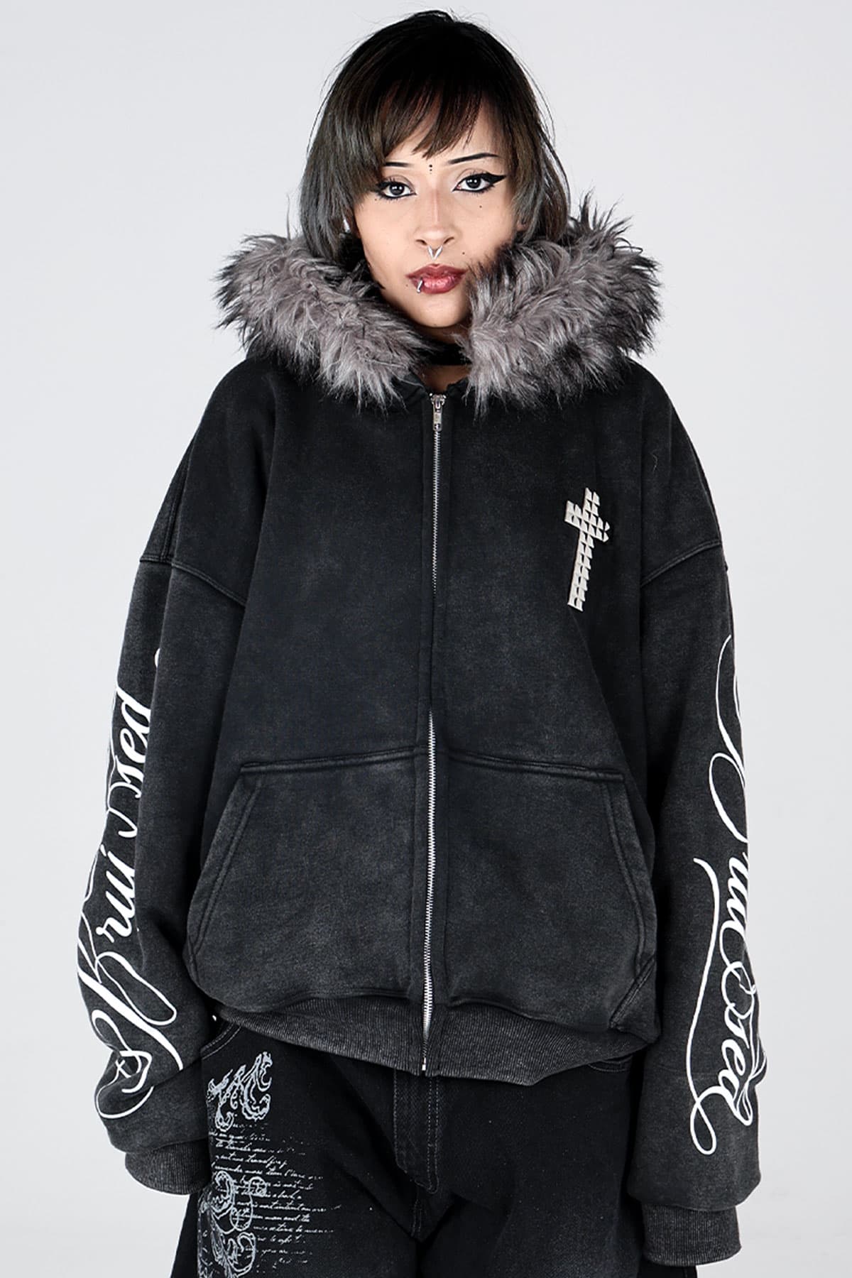 Heavyweight cotton zip-up built for long-lasting comfort and everyday wear. Relaxed fit with a durable screen print made to hold up and stand out.