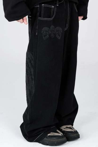 Durable mid-weight denim with a relaxed, baggy fit built for everyday wear. Premium cotton comfort, wide leg, and a long-lasting screen print that holds up.