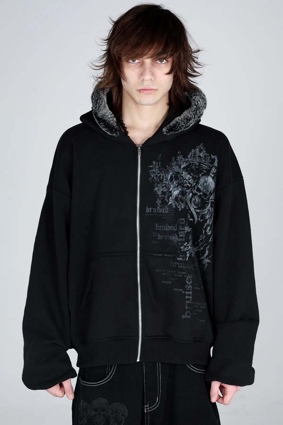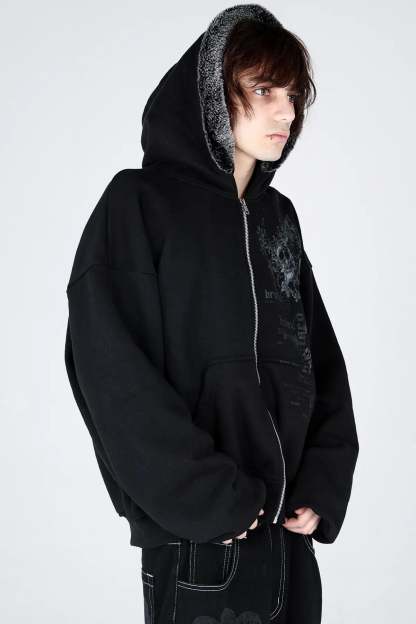 Heavyweight cotton zip-up built for long-lasting comfort and everyday wear. Relaxed fit with a durable screen print made to hold up and stand out.