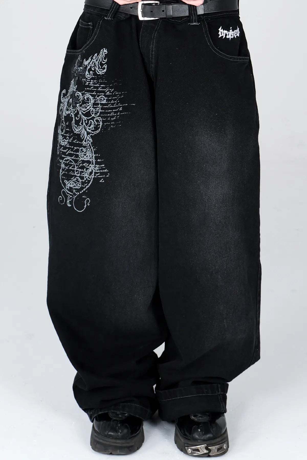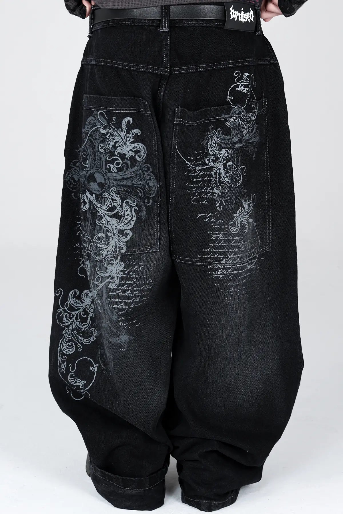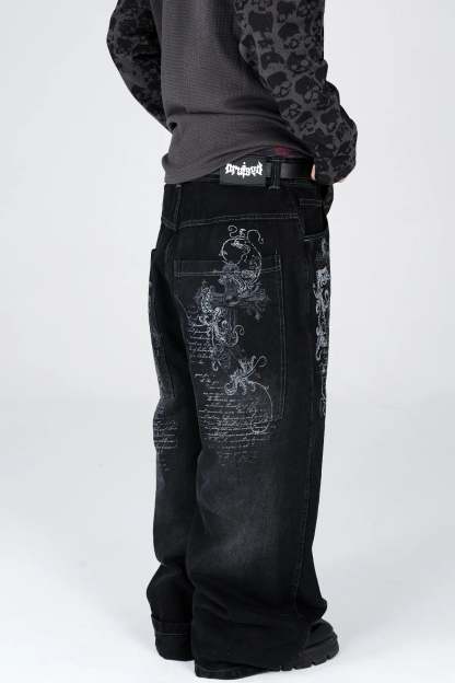 Durable mid-weight denim with a relaxed, baggy fit built for everyday wear. Premium cotton comfort, wide leg, and a long-lasting screen print that holds up.