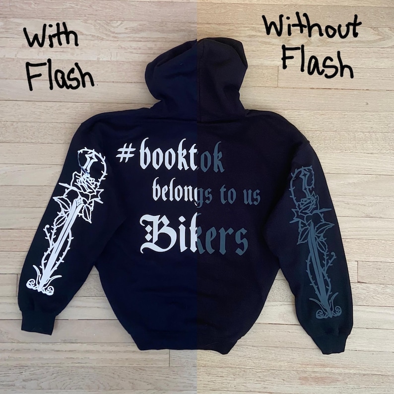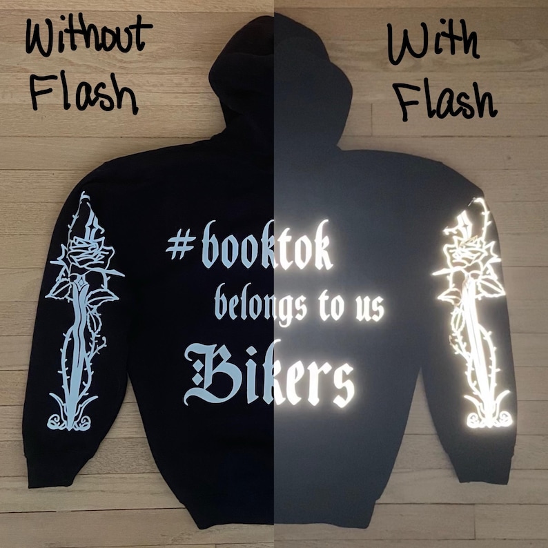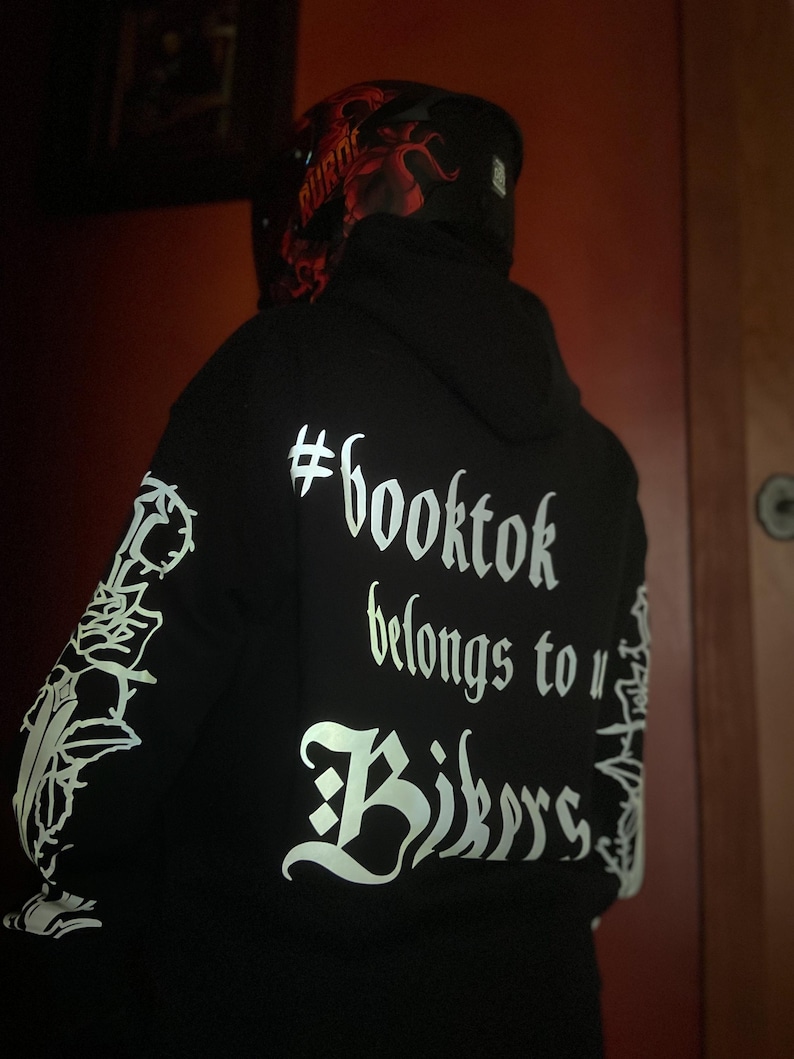 Booktok Biker Hoodie, Reflective Design, Crafted in USA