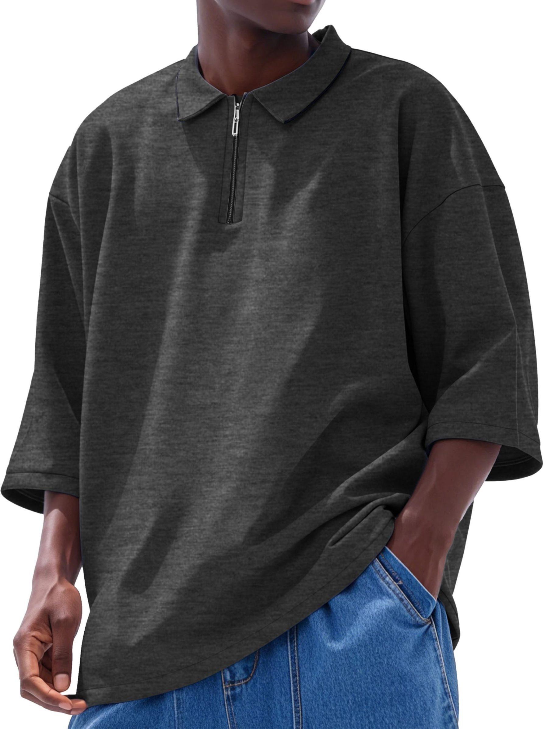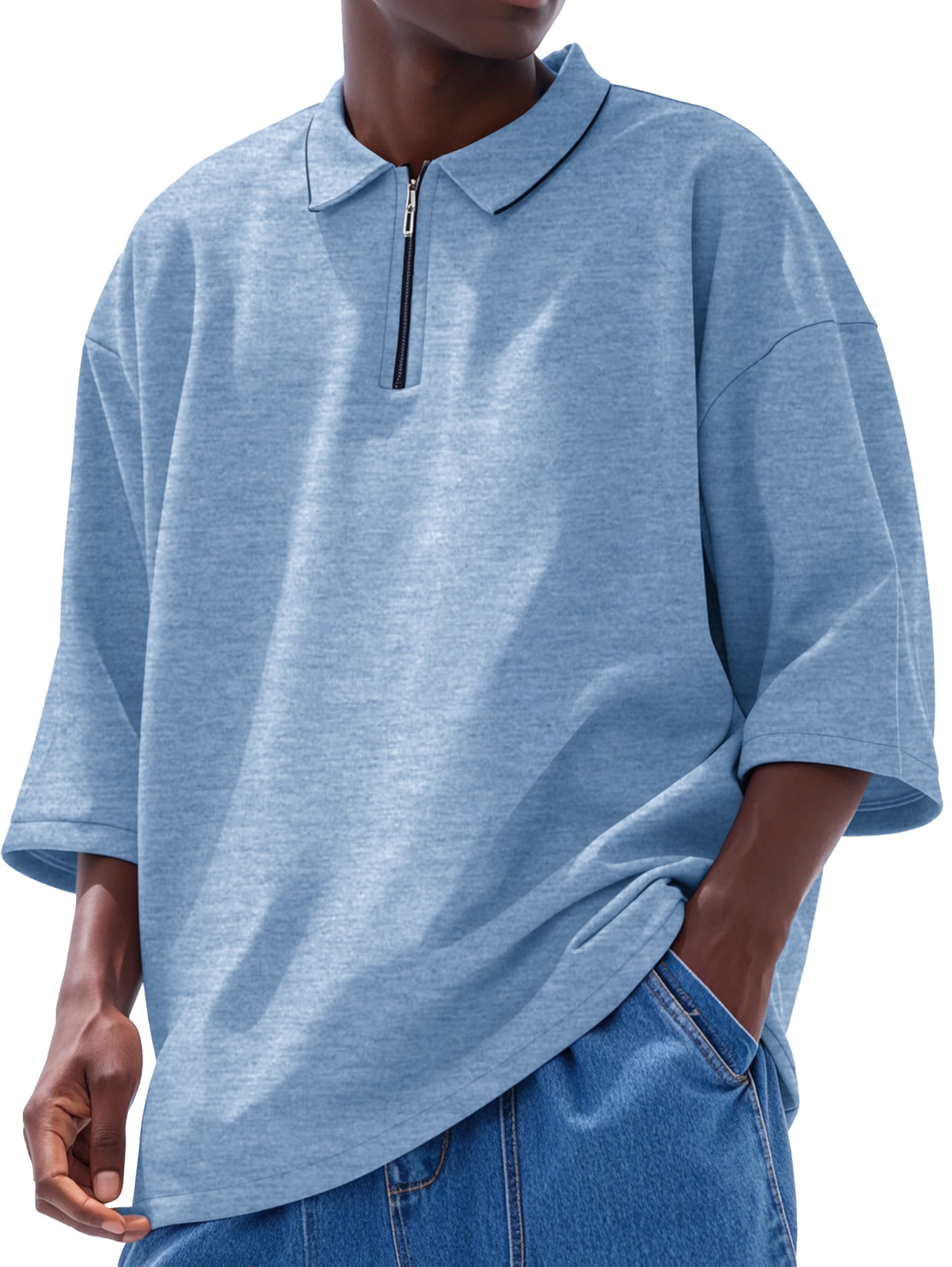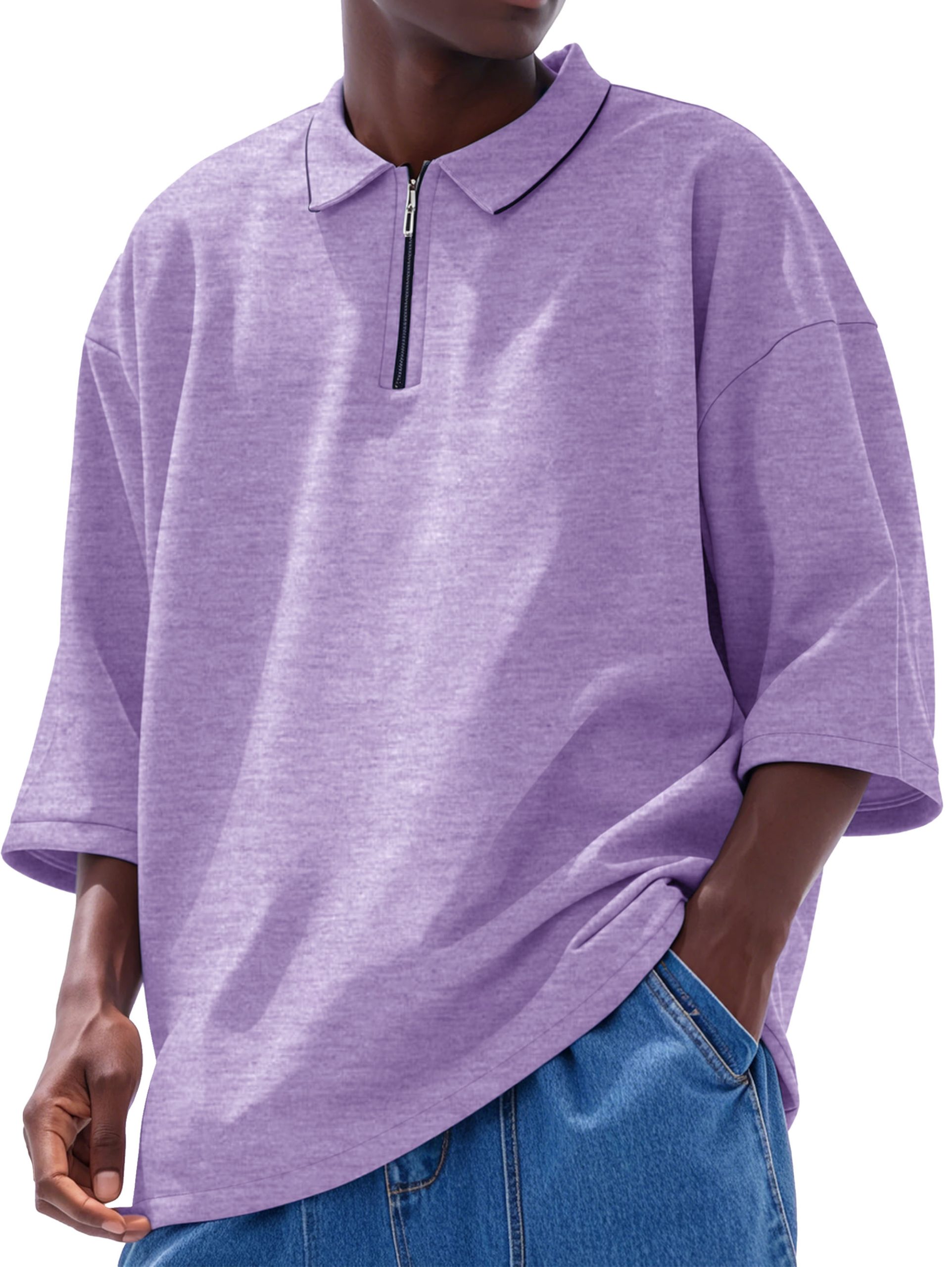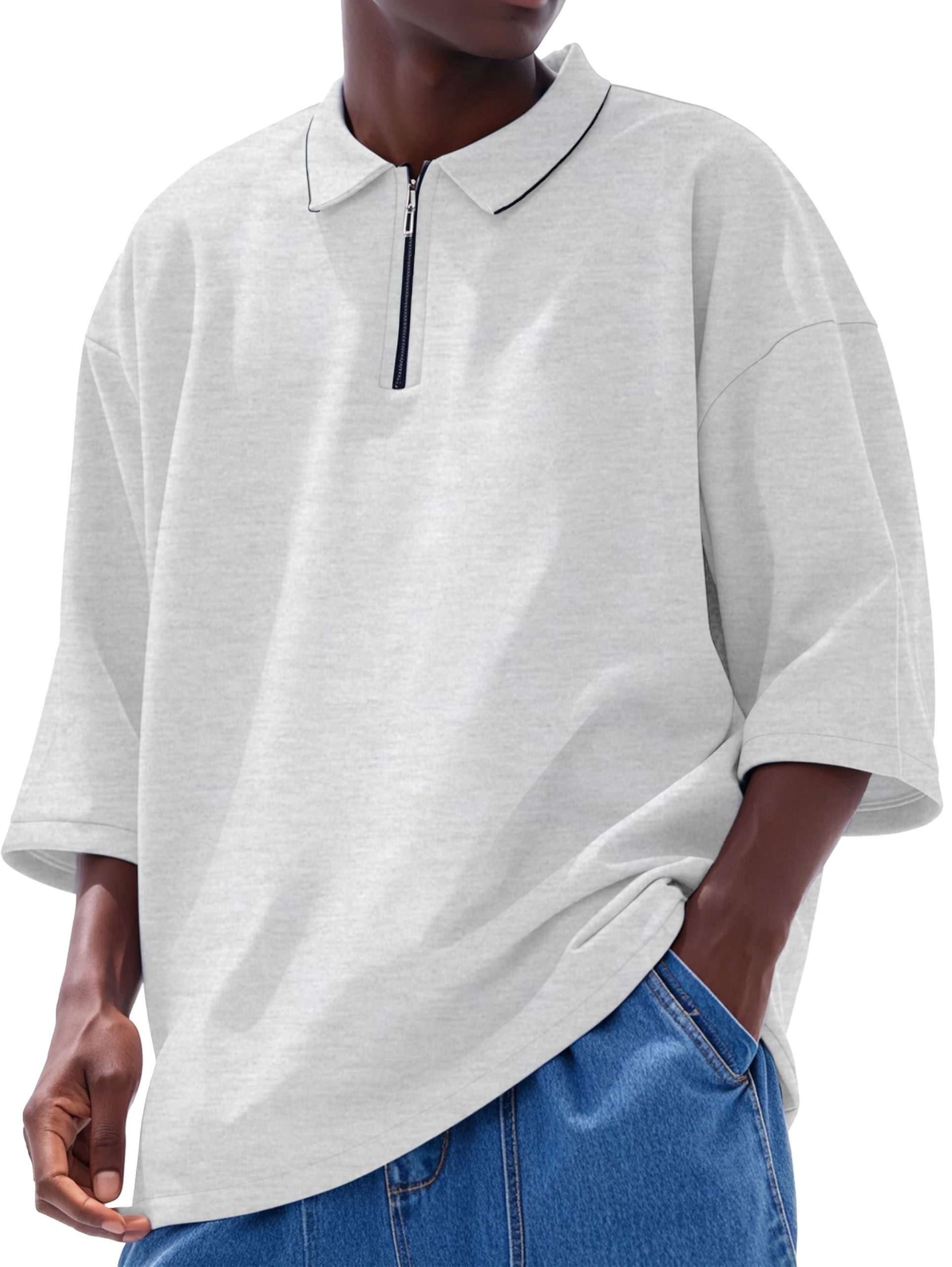 Men’s Fashion Casual Line Zipper Lapel Short Sleeve Polo Shirt