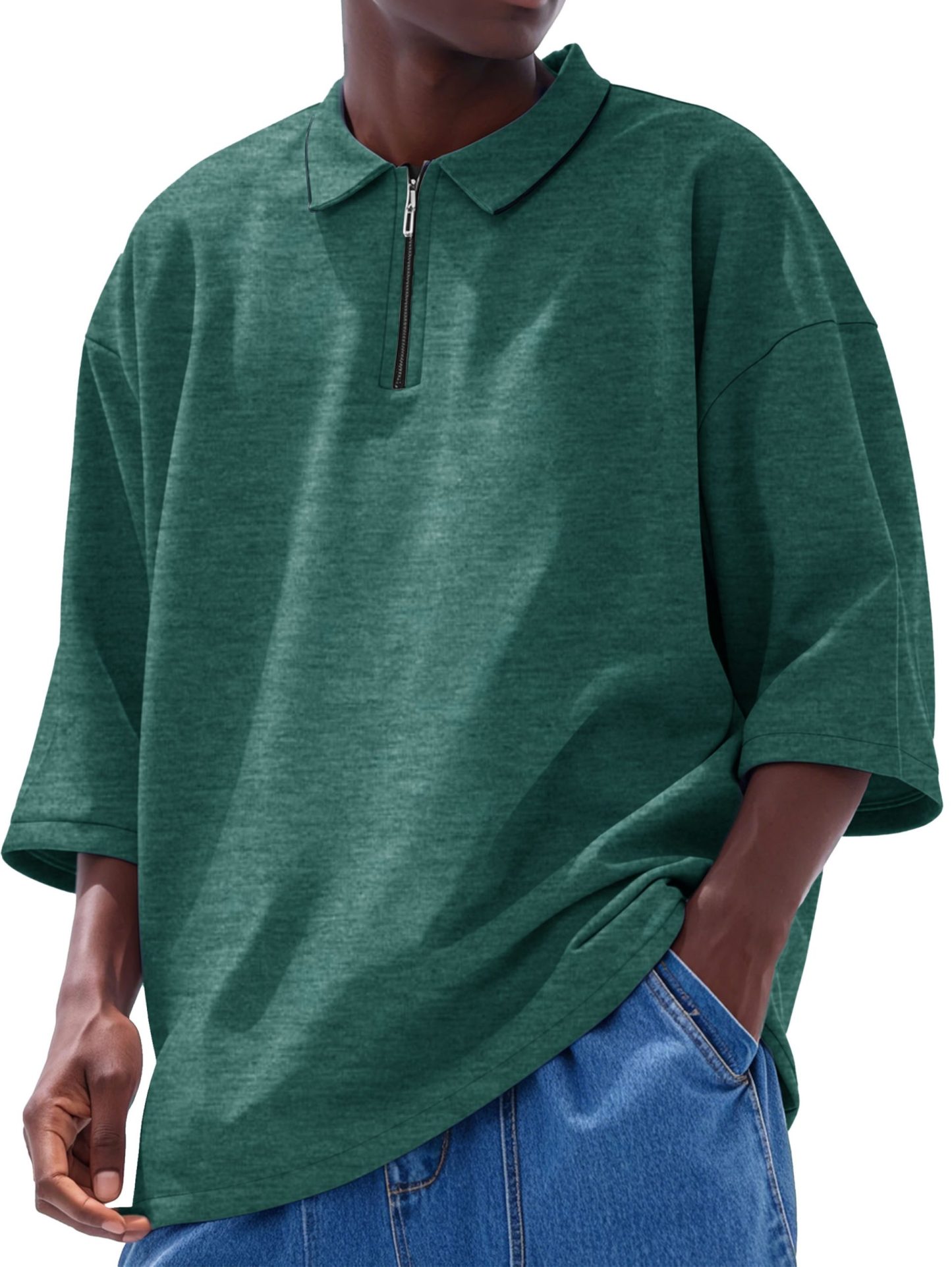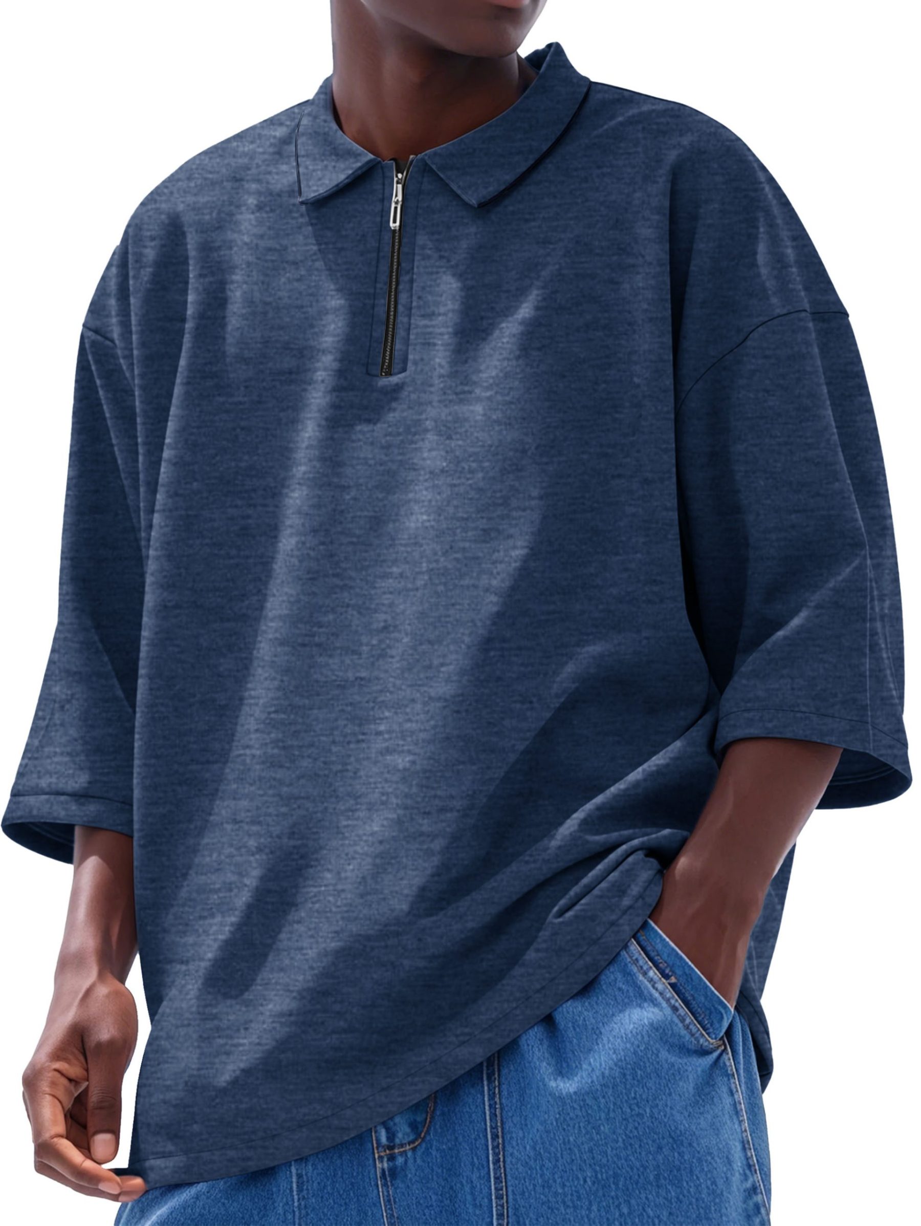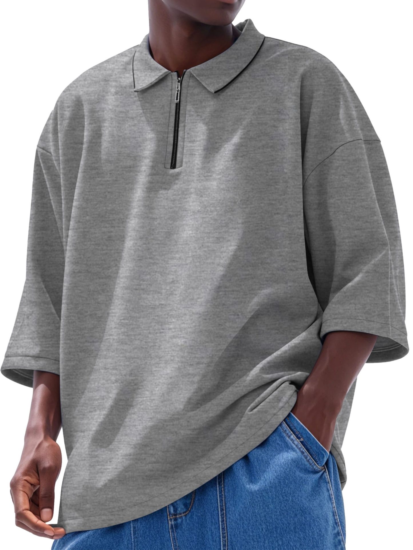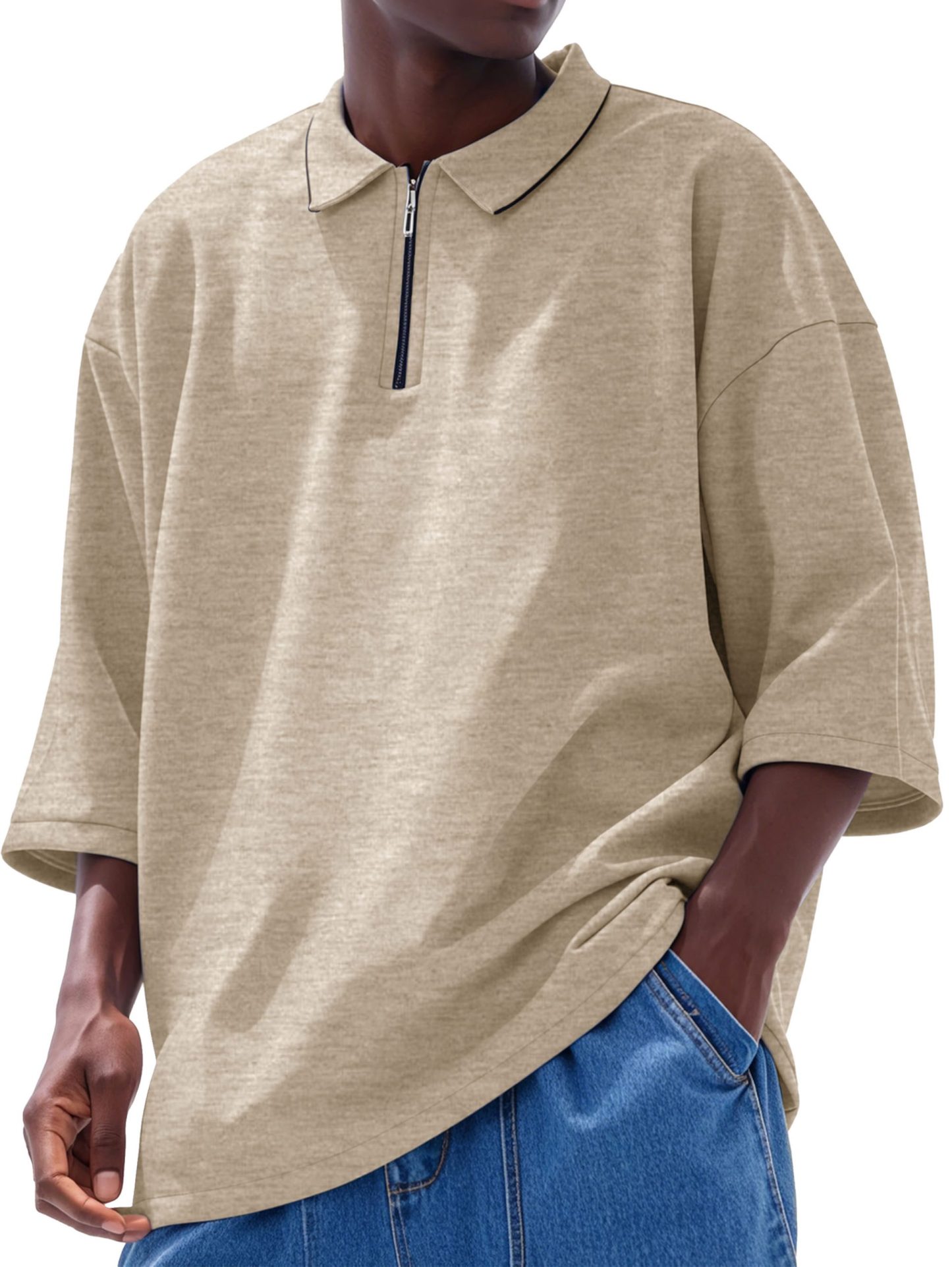 Men’s Fashion Casual Line Zipper Lapel Short Sleeve Polo Shirt