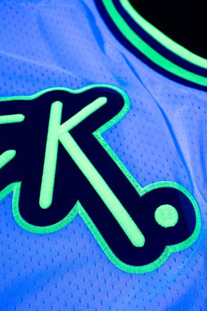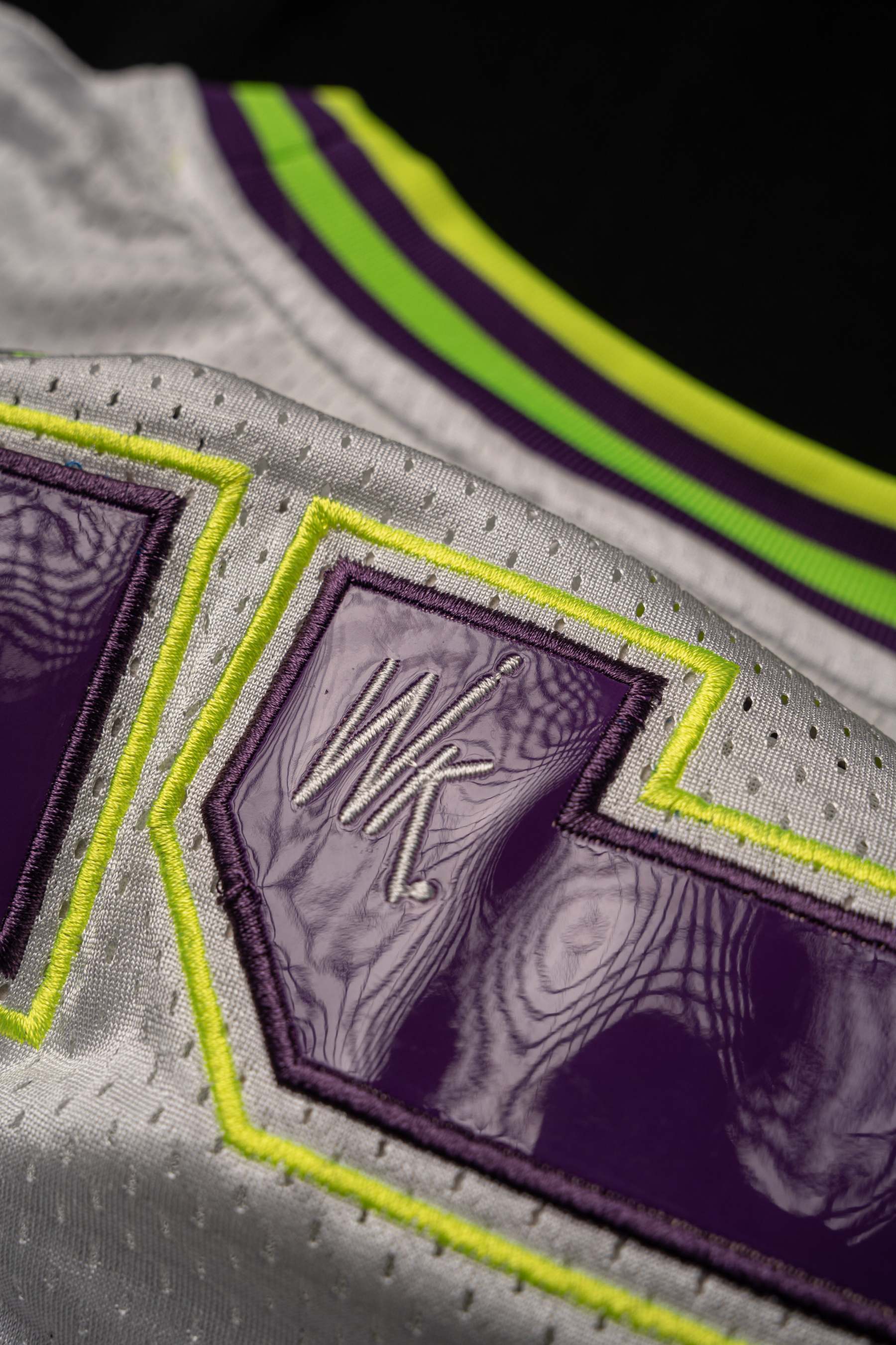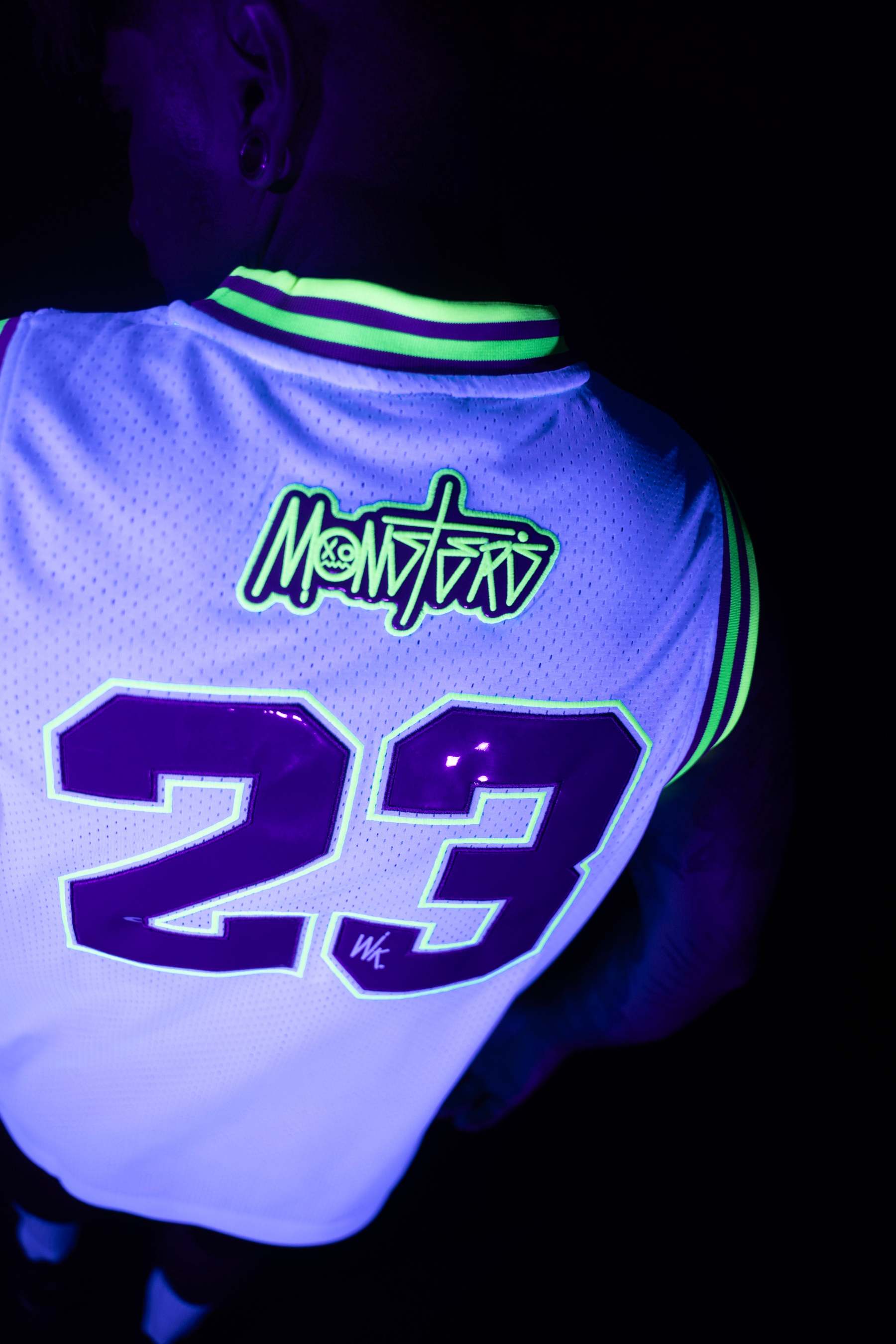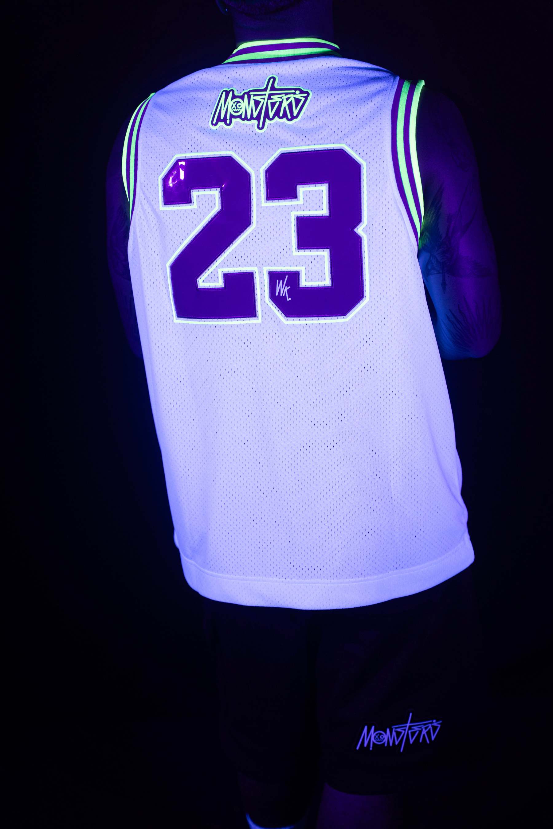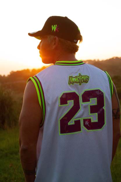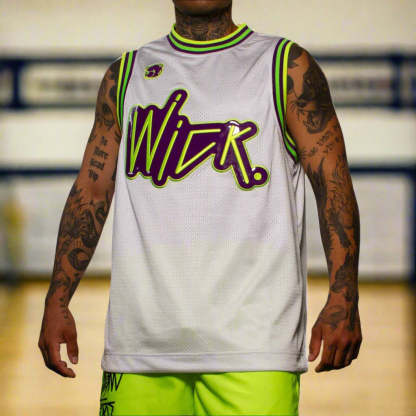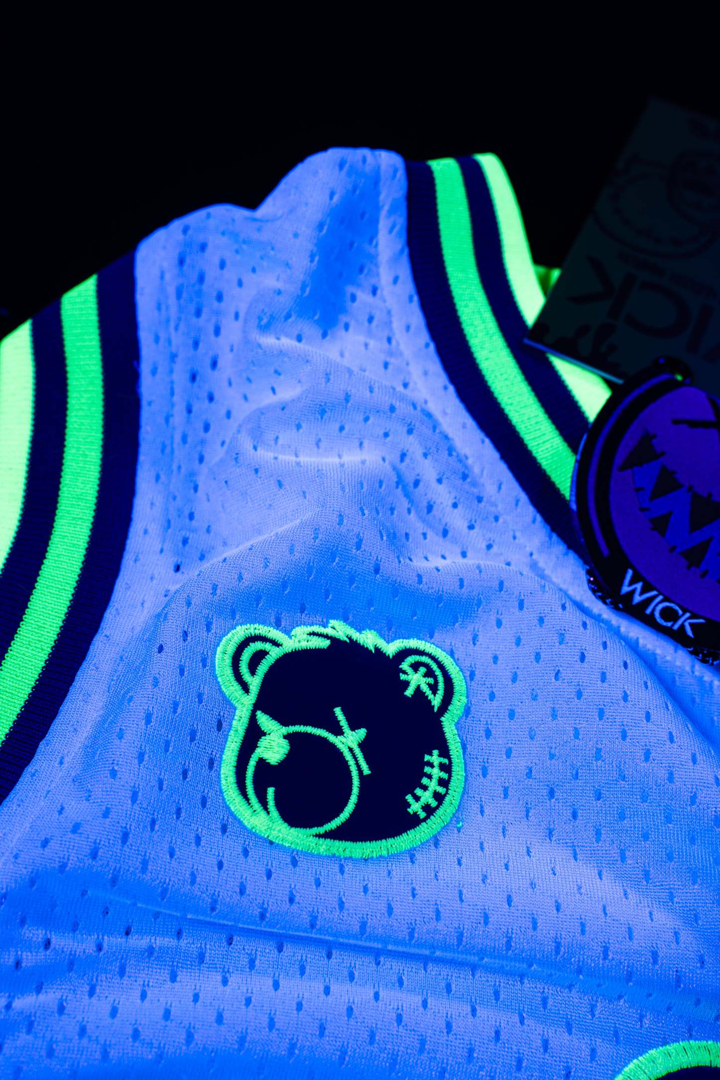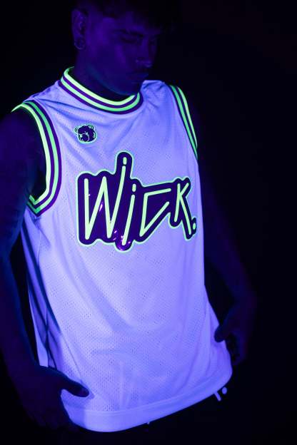 Glow up, Wickers! 🌟 This jersey is all about letting your inner monster shine. Crafted in crisp white with neon green and purple accents that pop under UV lights, the NR WHITE JERSEY is a bold statement piece for every party animal. Featuring our signature Wick logo in oversized graffiti style and a fierce bear patch that adds a bite of attitude, this piece is built for comfort and style.