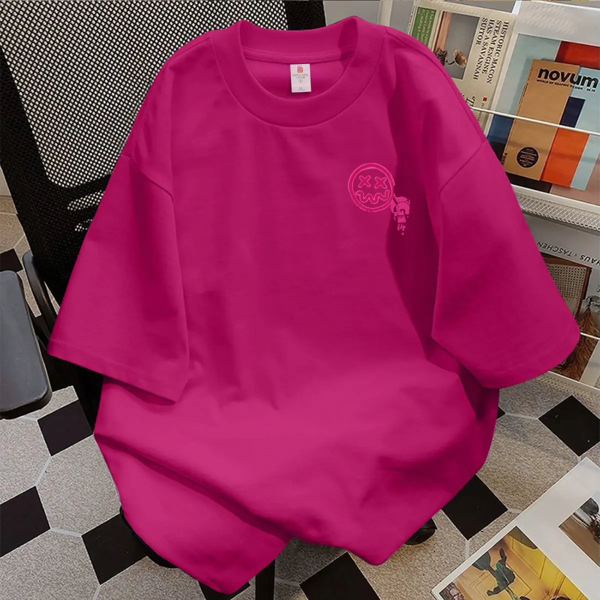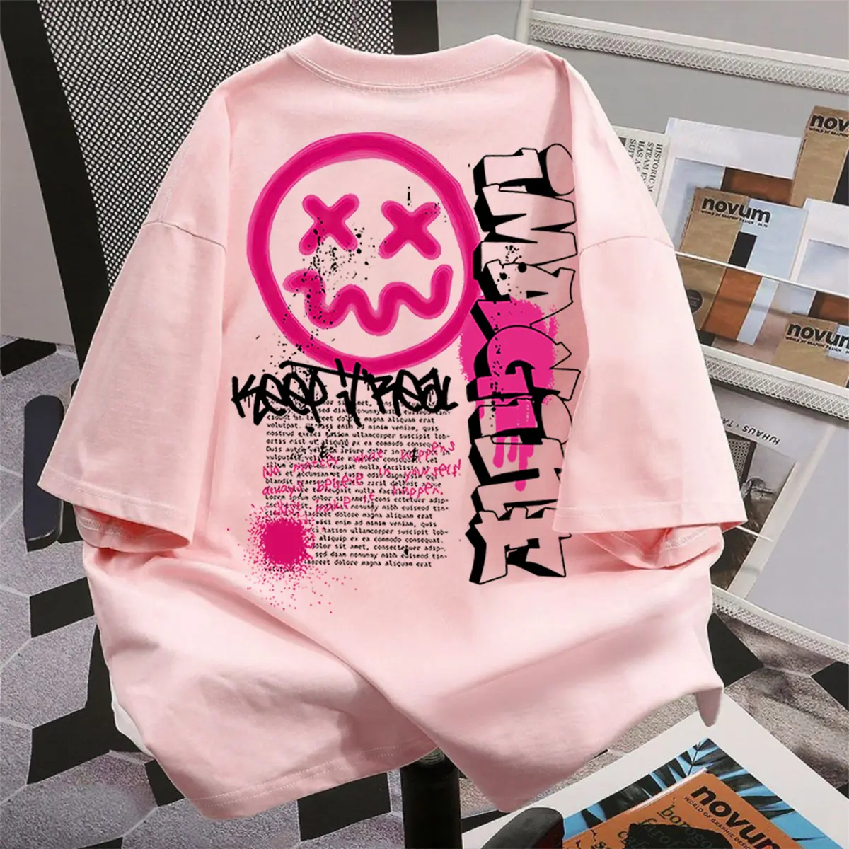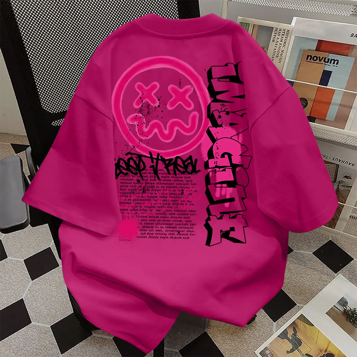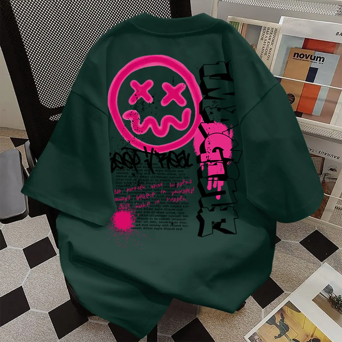Personalized Graffiti Smiley Face Print Hip-Hop Style Loose Round Neck Unisex Top