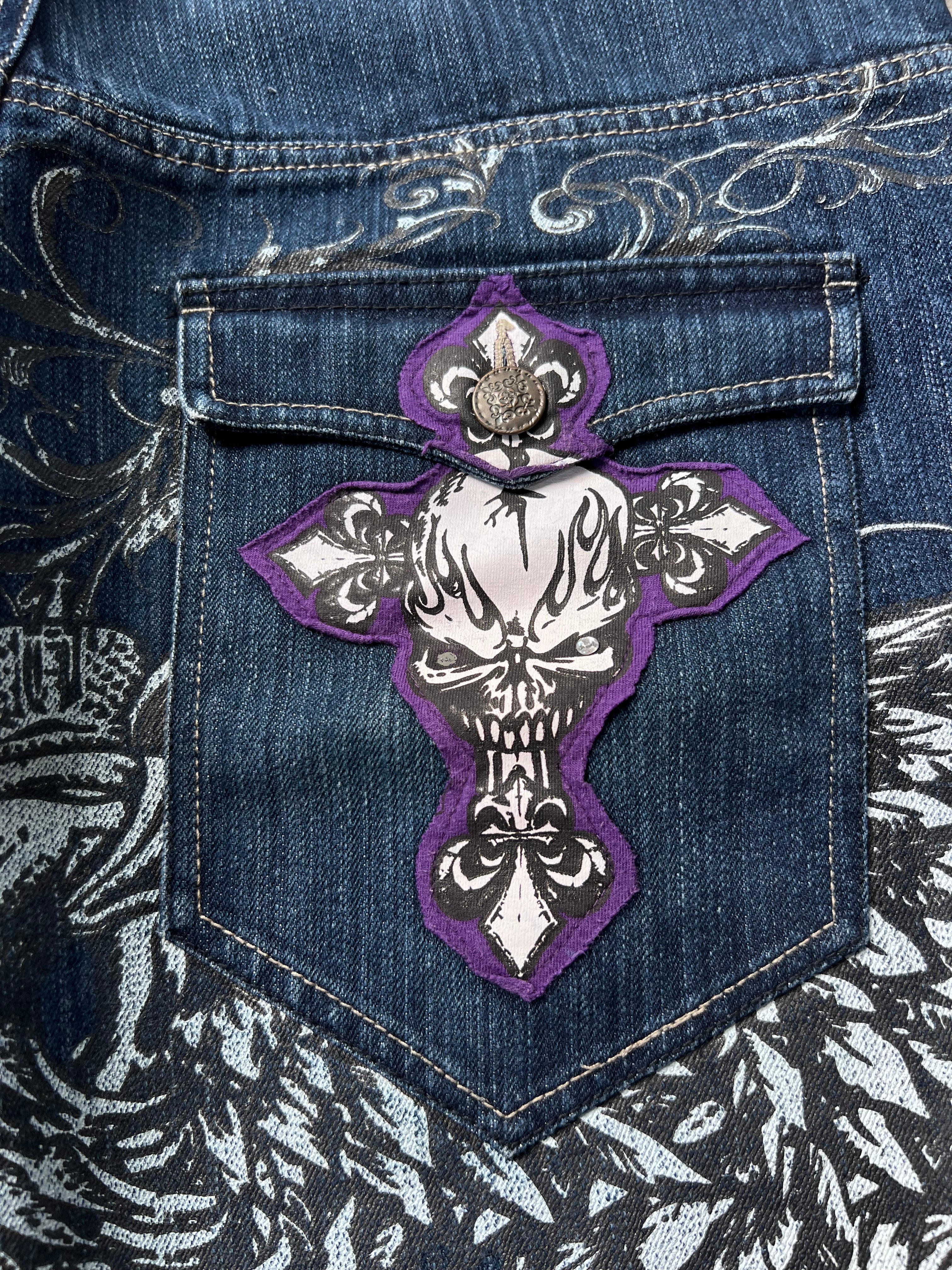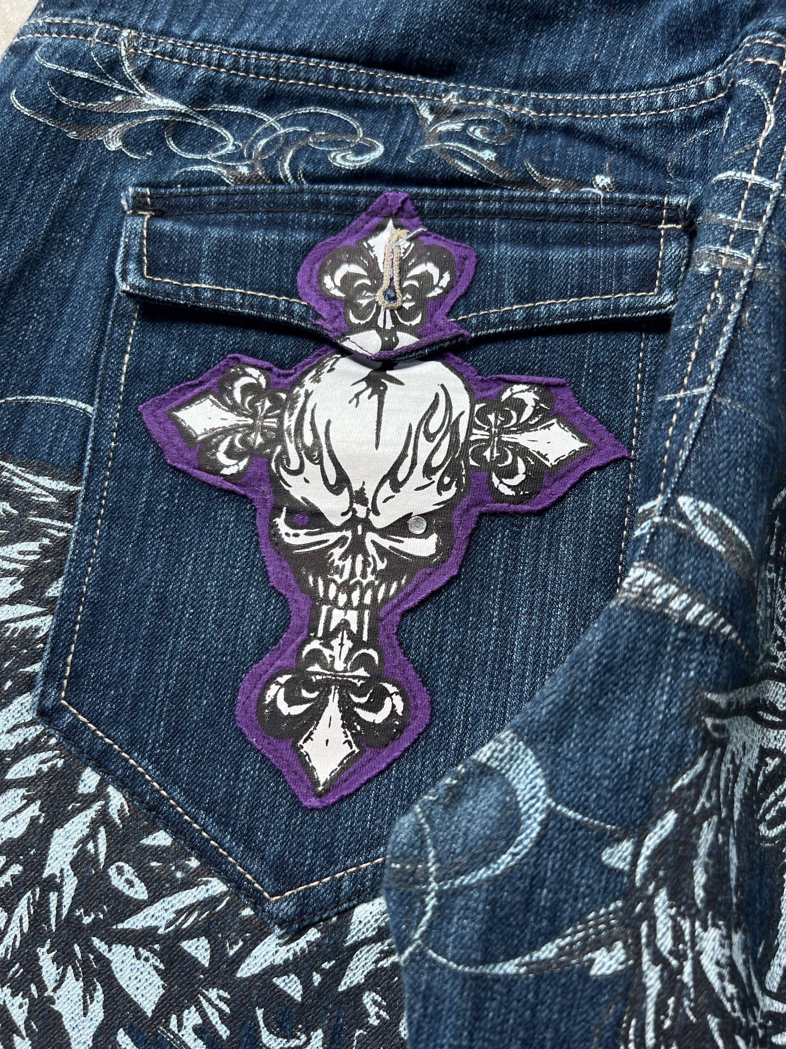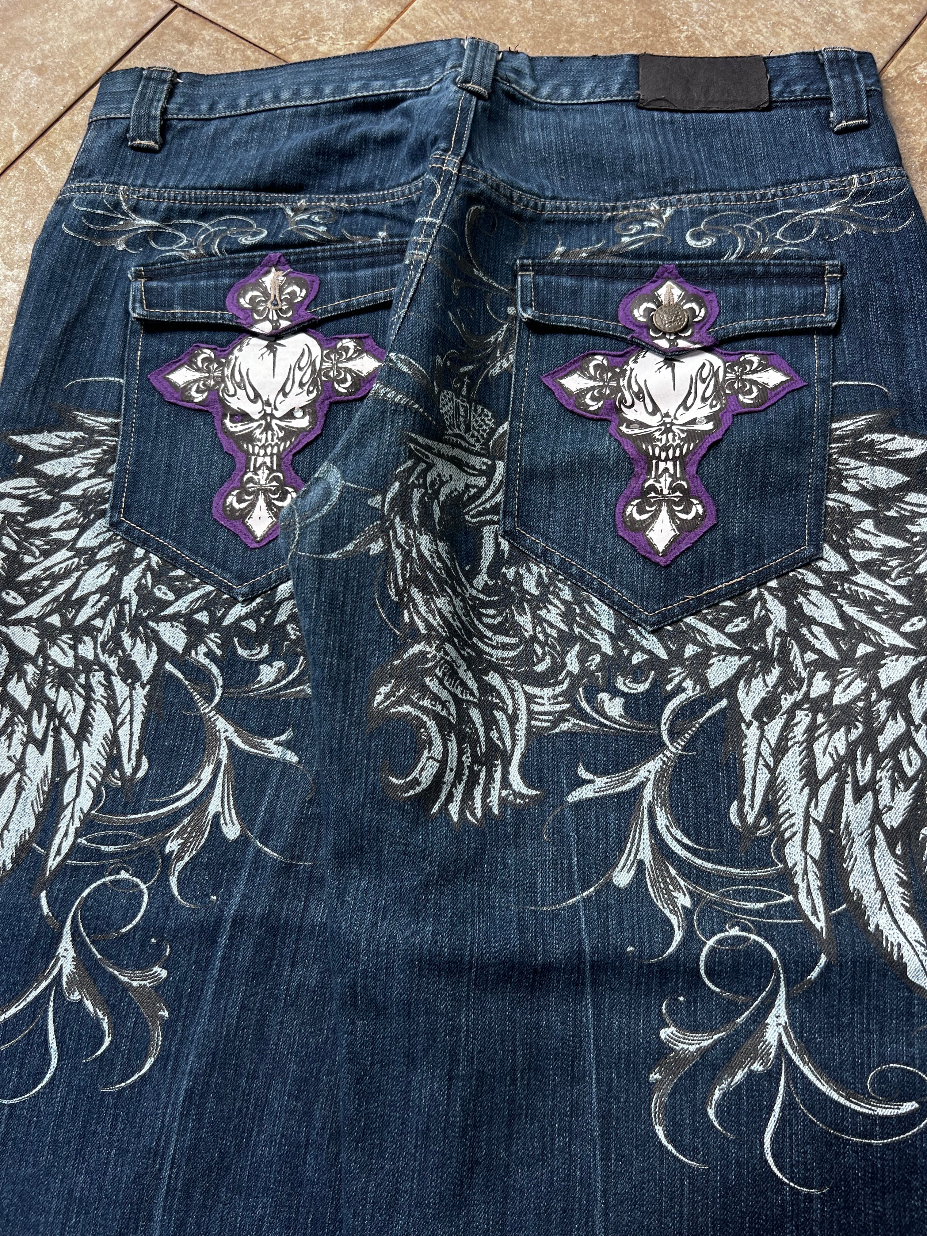 Details: Large skull wing graphic with grunge y2k aesthetics