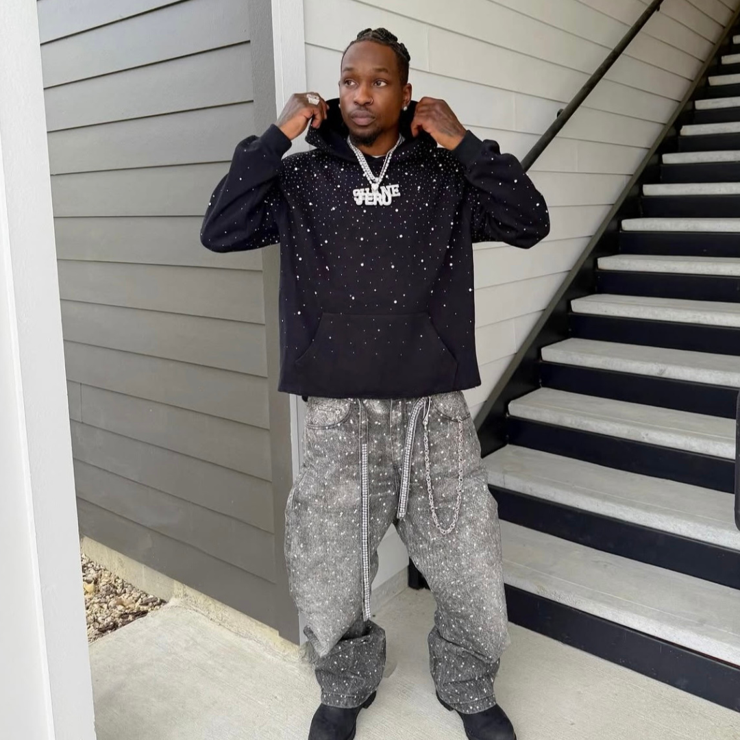 Elevate your wardrobe with the Rhinestone Galaxy Hoodie, perfect for those who dare to shine day or night. Handcrafted with extreme attention to detail this is a piece that will turn head and get compliments like you've never seen before.